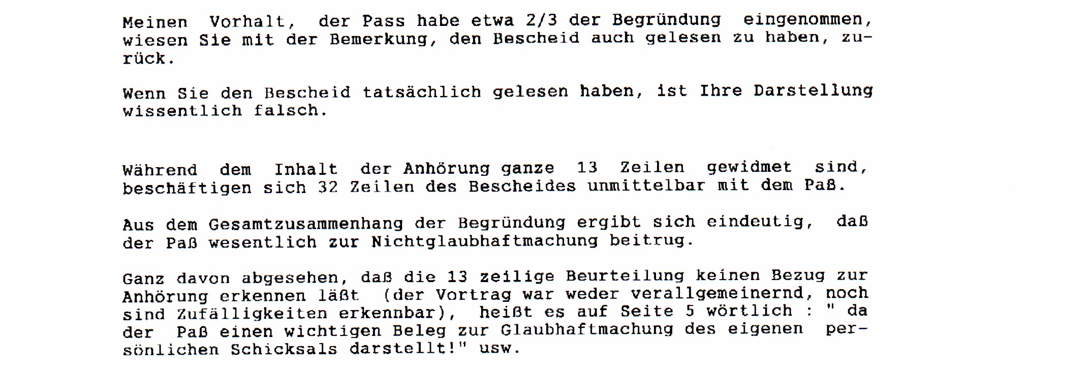 Ich konnte ihr weder den Zusammenhang zwischen genanntem Fälschungszeitpunkt und der Ablehnung klarmachen, noch die sich aus der Paßfälschung ergebende Beweislage. |